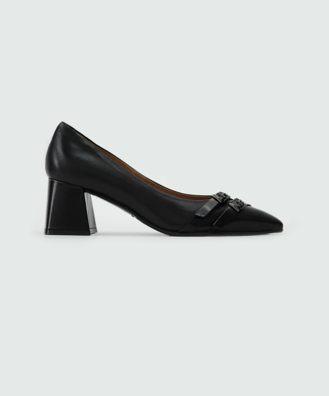 Elevate your look with the Olivia Block Heel, meticulously crafted in Italy from luxurious leather and embellished with a double buckle detail. The sturdy, block heel exudes confidence and elegance, perfect for any setting.